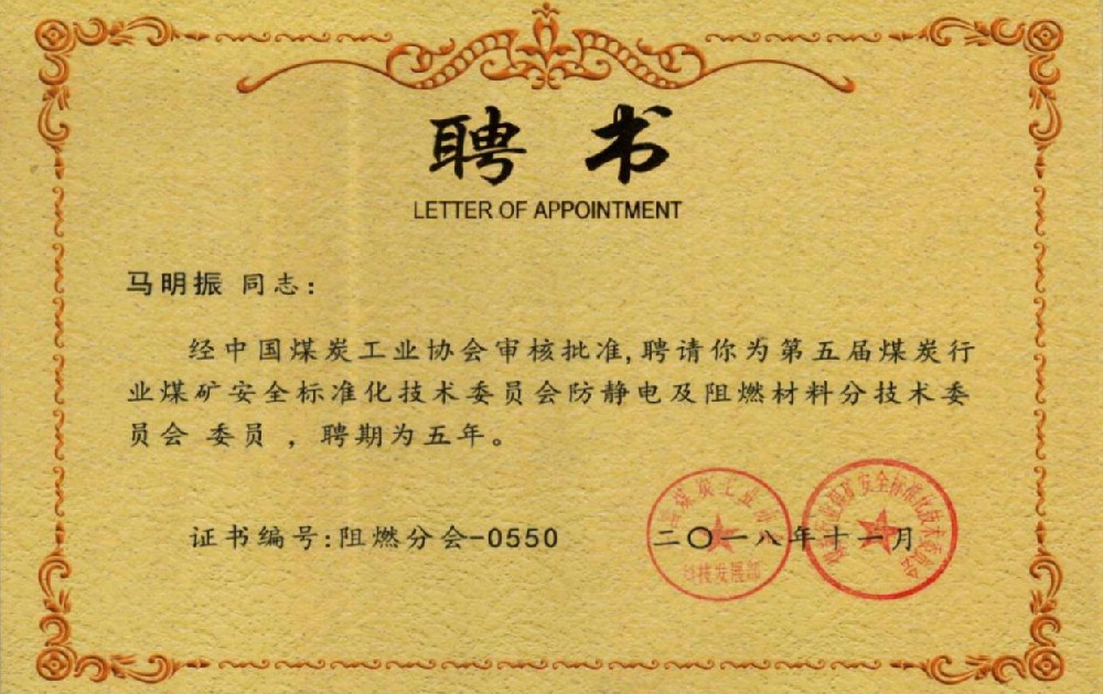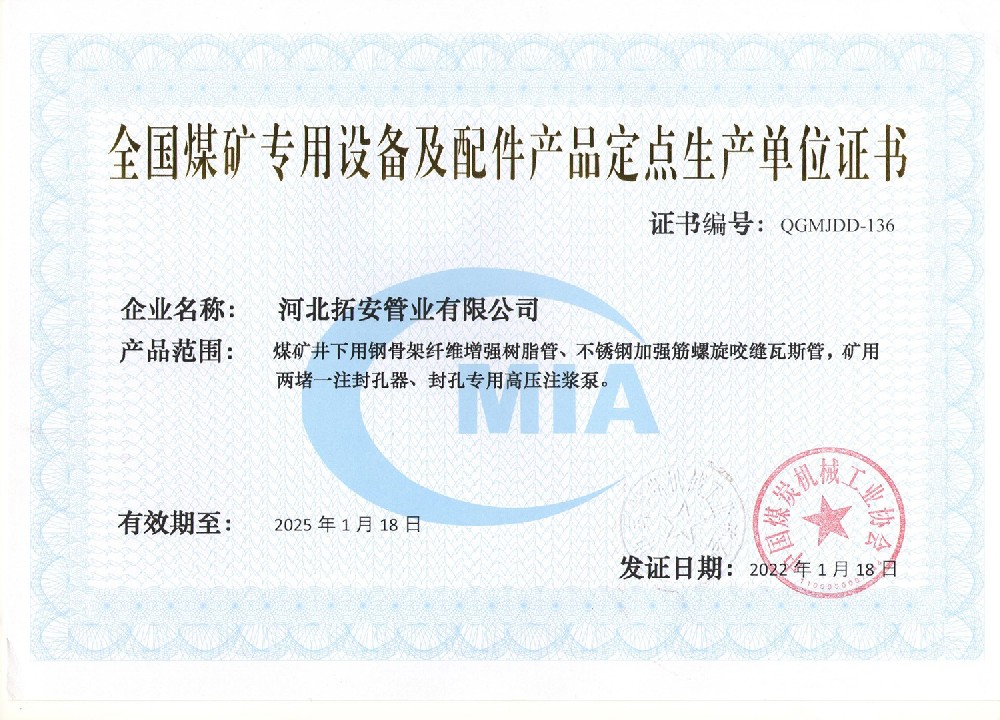 全國(guó)煤礦專用設(shè)備及配件產(chǎn)品定點(diǎn)生產(chǎn)單位證書